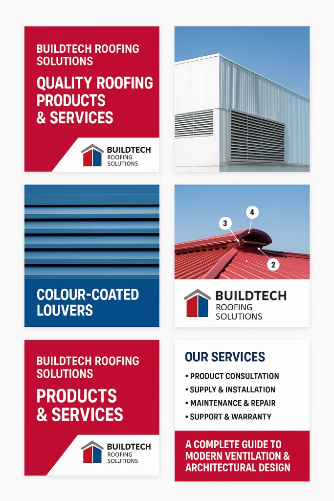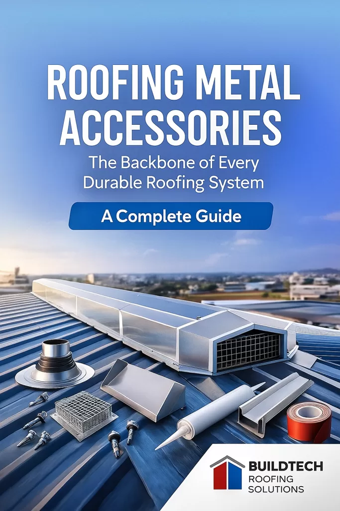 Roofing Metal Accessories: The Backbone of Every Durable Roofing System When it comes to roofing, we often focus on materials like PPGI, PPGL, BareGL, GP, GI, and Onduline. However, the true strength and longevity of a roofing system depend on the essential components that complete the installation. ✔ Flashings✔ Ridge caps✔ Louvers Flashing✔ Gutter systems✔ Fasteners✔ Barge boards✔ Downpipes✔ Birdproofing accessories✔ Sealants✔ Trims✔ Brackets & clamps Although small in size, these components significantly contribute to weatherproofing, structural integrity, ventilation, safety, and aesthetic finish. At Buildtech Roofing Solutions, we have seen this firsthand through thousands of industrial, commercial, and residential installations across India. A strong roofing project is built not only on quality sheets but on the precision and durability of every accessory supporting it. 1. Why Roofing Metal Accessories Matter A roofing system is like a machine — each part has a purpose. 1.1 They Seal Your Roof from Weather Damage Wind, rain, dust, humidity, and heat attack roofs constantly. Accessories act as the defensive shield: A roof without proper accessories often fails within 3 to 5 years, even if the sheets are of top quality. 1.2 They Improve Structural Stability Accessories like: …ensure the sheets stay locked during storms or uplift pressures. In India, where wind speeds can reach 150–180 km/hr, these accessories become structural insurance. 1.3 They Shape the Aesthetic Finish Even industrial buildings today demand modern architecture. Accessories enhance: Color-coated trims, barge boards, and gutters now play a big role in factory brand identity. 2. Buildtech Roofing Solutions – Complete Range of Roofing Metal Accessories Our products cover an end-to-end roofing & cladding installation system. Let’s explore each category. 2.1 Ridge Caps The top-most crown of every roof Used to seal the junction where two roof sheets meet at the peak. Buildtech offers: Material Options:PPGI / PPGL (0.40–0.60 mm) Why is it important: Prevents leakage at the roof apex, protects against wind entry. 2.2 Flashings & Trims Precision-engineered for water blockage and neat finishing Available types: Benefits: 2.3 Gutters & Downpipes A controlled rainwater management system Buildtech manufactures: Purpose:Stormwater management prevents: Materials:PPGI/PPGL, Galvalume, Aluminium — as per project requirement. 2.4 Self-Drilling Screws & Washers The micro-component with mega importance A sheet is only as strong as its screws. We supply: Why EPDM matters:UV-resistant, heat-proof, vibration-absorbent. 2.5 Louvers (Metal Louvers / Z-Fin Louvers) Airflow control without dust entry Our industrial louvers include: Applications:Factories, warehouses, cold storage, and generator rooms. Benefits: 2.6 Drip Trims & Eaves Trims Protecting edges from water overflow These ensure: 2.7 Roof Ventilators (Ridge Ventilators & Turbo Ventilators) Although ventilators are full-scale products, they fall under the roofing accessory ecosystem because they integrate with the roof sheet. Buildtech offers: 2.8 Bird Netting & Bird Guards Industrial roofs attract birds, which cause: Accessories include: 2.9 Silicone Sealants & Tapes Waterproofing support accessories Ensures: 3. How Buildtech Ensures Premium-Quality Roofing Accessories We follow strict engineering guidelines: ✔BIS-approved/coated materials ✔Perfect colour match with PPGI & PPGL sheets ✔CNC-roll formed for precision ✔Rust-resistant & weatherproof ✔High-tensile steel options ✔Custom fabrication for client-specific details Every accessory is produced with the same priority as a major roofing product. 4. Industries Served Buildtech accessories are widely used by: ✔Manufacturing plants ✔Warehouses ✔PEB buildings ✔Commercial buildings ✔Farmhouses ✔Residential extensions ✔Logistic hubs ✔Automotive industry ✔Pharma plants ✔Educational institutions 5. Installation Best Practices To ensure long life: ✔Use EPDM washer screws ✔Avoid manual drilling — always use self-drilling fasteners ✔Overlap sheet edges properly ✔Apply sealant in recommended locations ✔Maintain gutter slope (minimum 1:200) ✔Check for thermal movement spaces 6. Choosing Buildtech Roofing Solutions With 15+ years of experience, Buildtech is a trusted partner for: ✔ roofing sheets✔ louvers✔ ridge ventilators✔ insulated panels✔ deck sheets✔ complete accessory systems Our team supports: 7. Conclusion Roofing metal accessories are the hidden heroes of every high-performance roofing structure. They ensure: At Buildtech Roofing Solutions, we provide a complete roofing ecosystem — from sheets and panels to every accessory needed for a premium-quality installation.