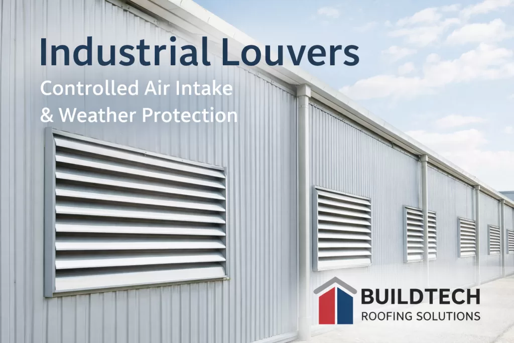Introduction: Why Industrial Louvers Matter in Modern Industrial Buildings Ventilation is a foundational requirement in industrial and commercial building design. Facilities such as factories, warehouses, manufacturing units, and power plants continuously generate heat, dust, fumes, and moisture. If these elements are not managed effectively, they can affect worker safety, reduce equipment lifespan, and increase operational costs. While roof-based ventilation systems like ridge ventilators and turbo ventilators help release hot air, they cannot function efficiently without a controlled air intake system. This is where industrial louvers become essential. Industrial louvers regulate how fresh air enters and exits a building while protecting interiors from rain, dust, birds, and external contaminants. When designed and installed correctly, they form a critical part of a balanced, energy-efficient ventilation system. This comprehensive buyer’s guide explains industrial louvers in detail, covering their function, types, materials, applications, technical specifications, and selection guidelines for long-term performance. What Are Industrial Louvers? Industrial louvers are engineered airflow management systems installed on building walls, facades, or ventilation openings. They allow controlled air movement while restricting unwanted elements such as rainwater, debris, insects, and birds from entering the structure. Unlike open windows or unprotected vents, louvers use angled blades or fins that direct airflow efficiently and safely. This design ensures ventilation without compromising protection. How Industrial Louvers Work Industrial louvers operate on a passive airflow principle: When paired with ridge ventilators or turbo ventilators, louvers help establish a stable air circulation cycle, enhancing natural ventilation throughout the building. Why Industrial Louvers Are Critical for Industrial Environments Industrial facilities require controlled airflow rather than exposed openings. Louvers deliver this control by managing intake and exhaust in a predictable manner. Without proper louver systems, buildings often face: Industrial louvers address these challenges while improving indoor comfort and safety. Key Benefits of Industrial Louvers 1. Controlled Airflow Louvers regulate air volume, preventing pressure imbalance and sudden airflow changes inside the building. 2. Weather Protection Special blade geometry blocks rainwater even during heavy rainfall or strong winds. 3. Dust and Debris Reduction Industrial designs minimize dust, sand, and external particle entry. 4. Improved Indoor Air Quality Fresh air circulation reduces heat, humidity, and airborne contaminants. 5. Low Maintenance Requirements With no moving parts, industrial louvers require minimal upkeep. 6. Seamless Integration with Ventilation Systems Louvers complement natural and mechanical ventilation solutions effectively. Types of Industrial Louvers 1. Fixed Industrial Louvers These louvers have non-movable blades and are widely used for general ventilation. Key Features: Applications: Warehouses, factories, utility areas 2. Z-Type Industrial Louvers Z-shaped blades enhance rain protection and airflow control. Key Features: Applications: Manufacturing units, electrical rooms 3. Rain-Proof Industrial Louvers Designed for regions with high rainfall intensity. Key Features: Applications: Coastal and high-rainfall zones 4. Sand Trap Louvers Engineered for dusty and sandy environments. Key Features: Applications: Cement plants, mining facilities 5. Bird-Proof Louvers Equipped with bird mesh or integrated protection. Key Features: Applications: Food processing units, warehouses Materials Used in Industrial Louvers Material selection directly affects durability, corrosion resistance, and lifecycle cost. Common Materials Importance of Material Selection Technical Specifications of Industrial Louvers (Typical Range) Parameter Specification Material GI / PPGI / Aluminium Thickness 0.50 – 1.00 mm Blade Type Fixed / Z-Type Finish Plain / Colour-Coated Installation Wall-mounted Maintenance Minimal Applications of Industrial Louvers Industrial louvers are widely used across multiple sectors, including: They are particularly important where fresh air intake and environmental protection must function together. Industrial Louvers vs Open Windows Aspect Industrial Louvers Open Windows Airflow Control Controlled Uncontrolled Weather Protection High Low Dust Resistance High Low Industrial Suitability Ideal Not recommended Maintenance Low Moderate Design Considerations When Choosing Industrial Louvers Airflow Requirement Determine airflow volume based on building size, heat load, and ventilation strategy. Environmental Conditions Dusty, coastal, or high-rainfall regions require specialized louver designs. Installation Location Wall orientation impacts airflow efficiency and weather exposure. Integration with Ventilation Systems Louvers should complement ridge or turbo ventilators for optimal performance. Installation Process Overview Proper installation ensures durability and performance. Typical Steps Include: Correct sealing prevents leakage, vibration, and long-term issues. Common Buyer Mistakes to Avoid Avoiding these mistakes significantly reduces future maintenance costs. Energy Efficiency and Sustainability Benefits Industrial louvers contribute to sustainable building practices by: They support energy-efficient and eco-conscious industrial infrastructure. Why Choose Buildtech Roofing Solutions Buildtech Roofing Solutions delivers complete industrial louver systems designed for performance and longevity. Our Strengths Include: We focus on durability, efficiency, and long-term value. Frequently Asked Questions (FAQ) Q1. Are industrial louvers waterproof?Yes. Rain-proof designs effectively prevent water ingress. Q2. Do louvers help reduce heat inside buildings?Yes. They improve airflow and support roof ventilation systems. Q3. How much ma