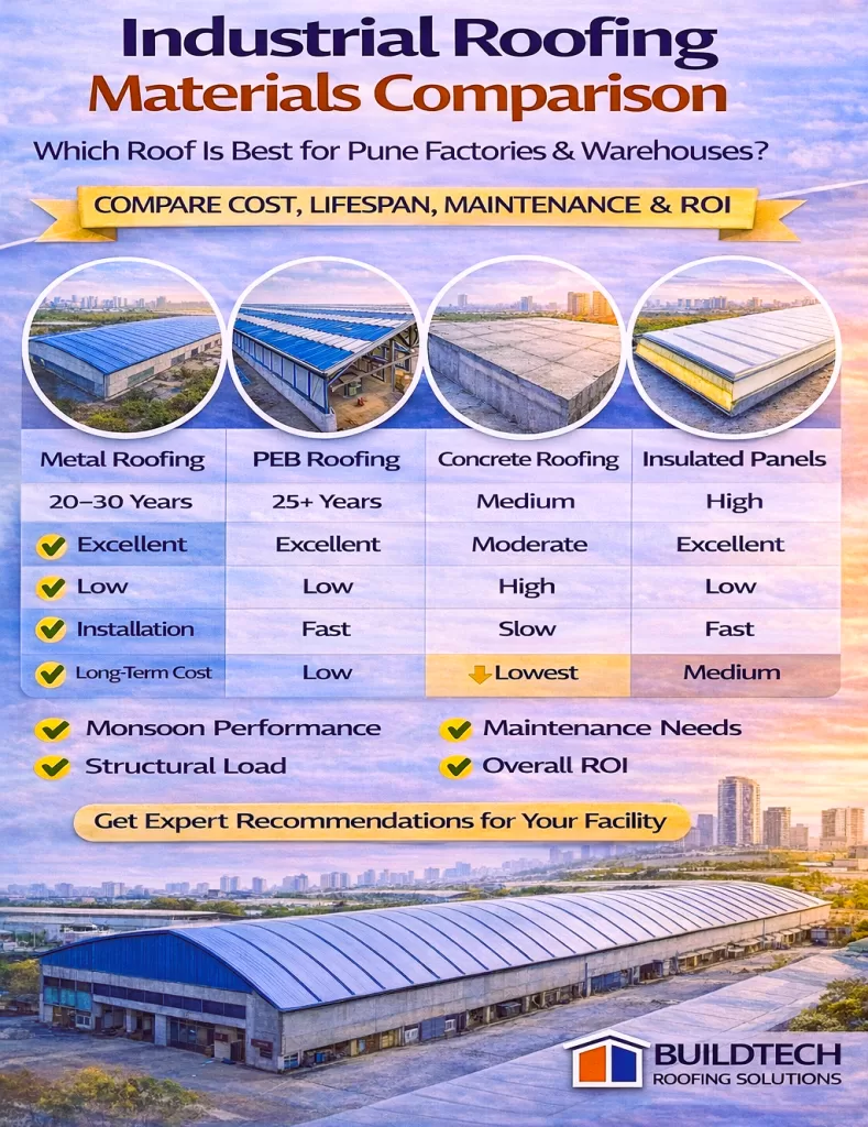 Takeaway: For most Pune industries, metal or PEB roofing delivers the best balance of performance and ROI.