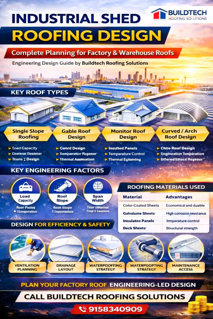 For professional industrial shed roofing planning and installation in Pune, Buildtech Roofing Solutions delivers engineered solutions tailored to industrial performance requirements.